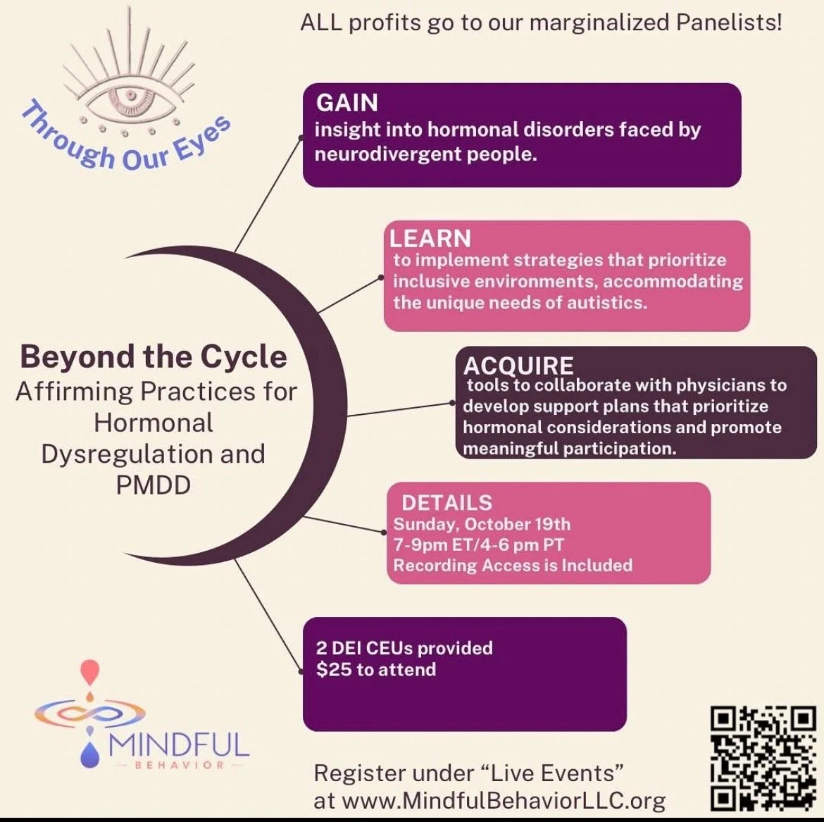 Together, we’ll explore the intersection of hormones, neurodivergence, and behavior, and how to create safety autonomy, and validation for those navigating these experiences